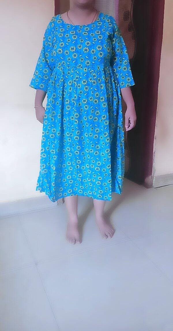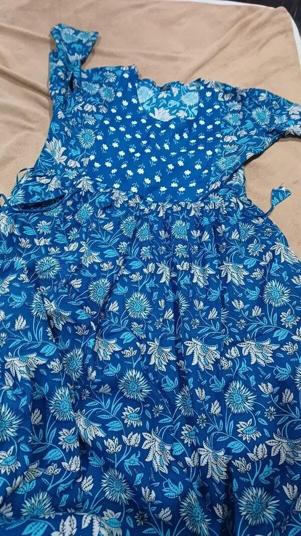 WOMOON Anarkali Blue Maternity Gown | Pure Cotton Feeding | Maternity Gown for her