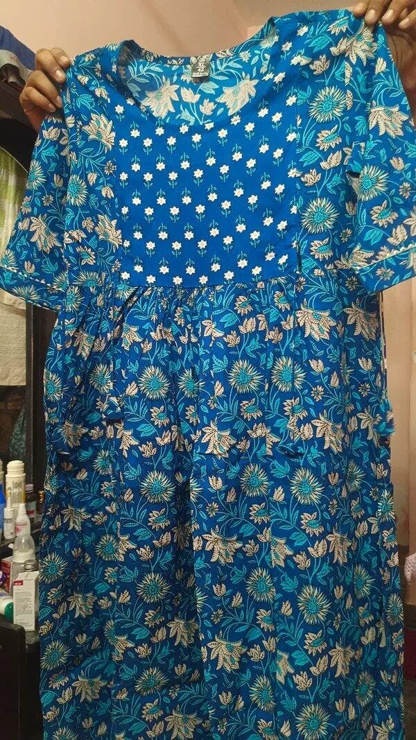 This pregnancy kurta is amazing for expecting moms 🤰💫 It feels so breezy and comfortable giving enough room for my growing belly 🌿 The material is soft and kind to my skin 🌸✨