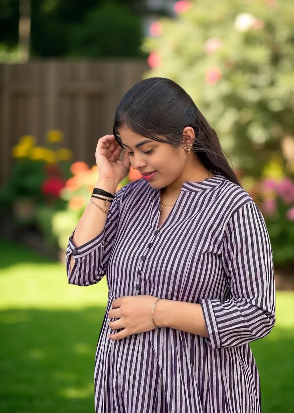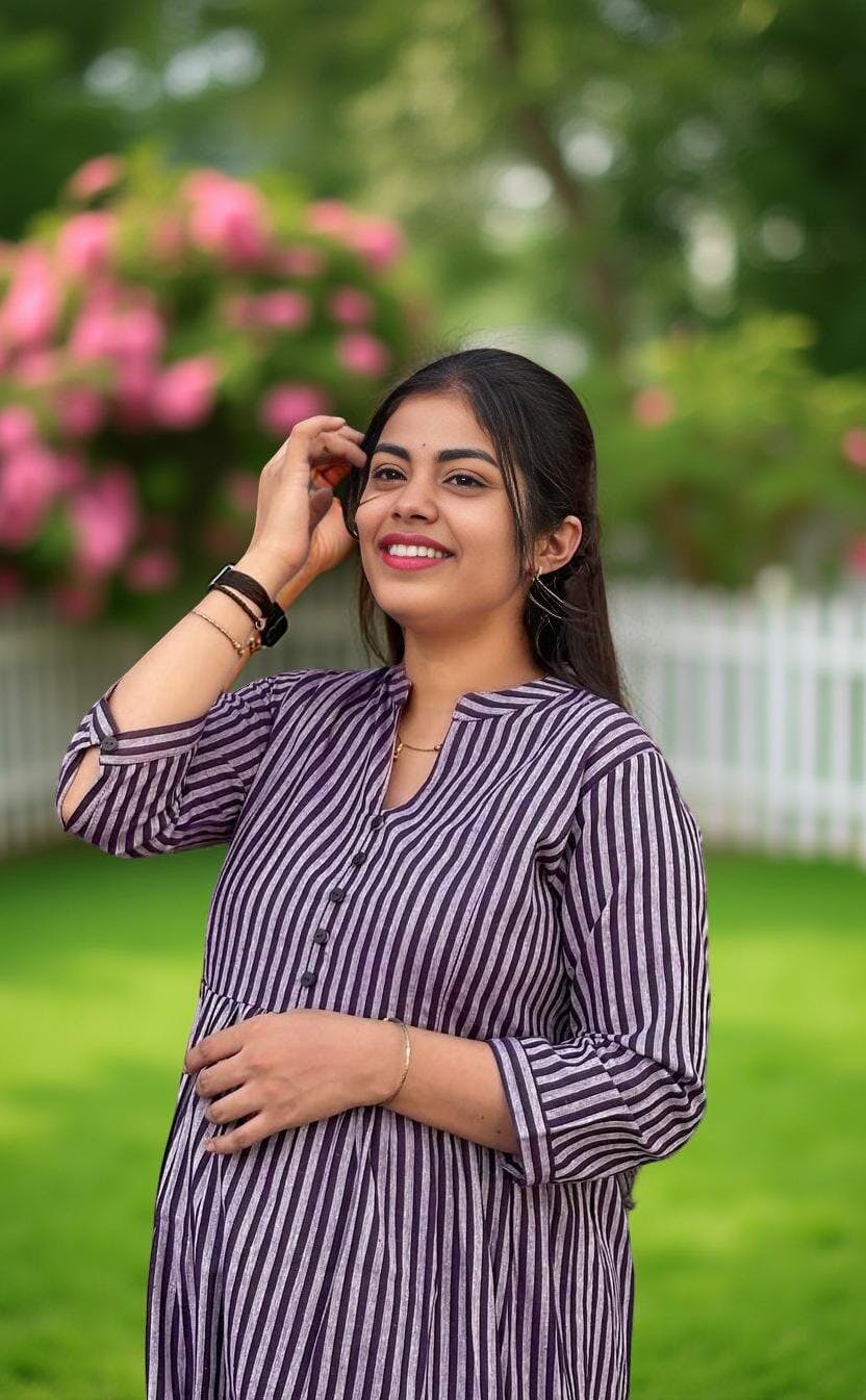 This pregnancy kurta is amazing for expecting moms 🤰💫 It feels so breezy and comfortable giving enough room for my growing belly 🌿 The material is soft and kind to my skin 🌸✨