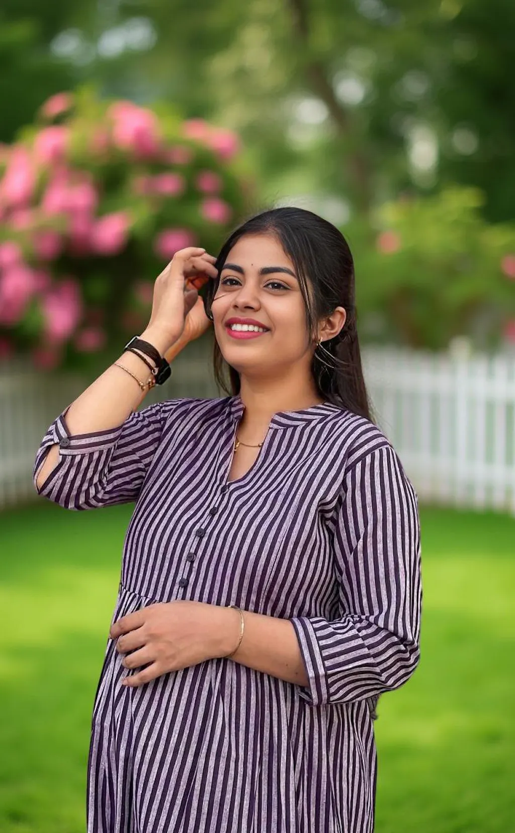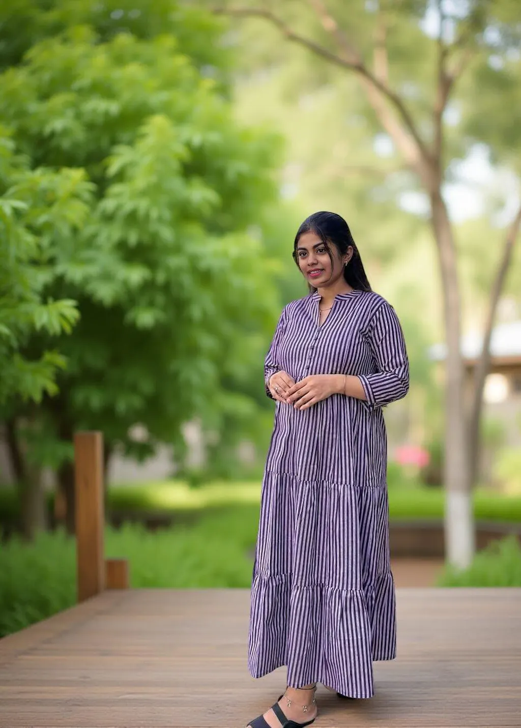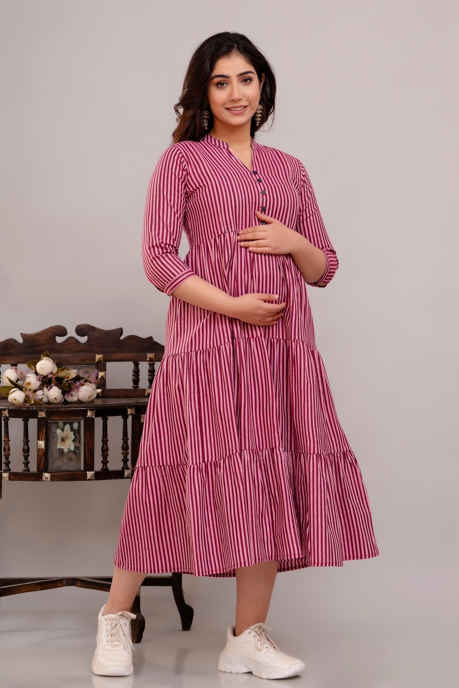 Elegant Striped Maternity Gown