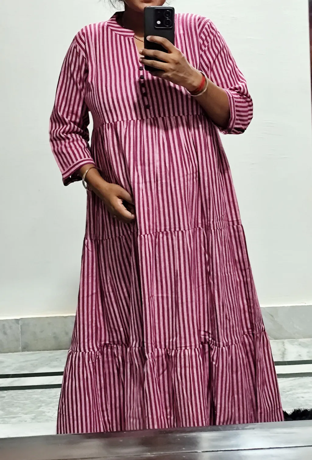 This pregnancy kurta is amazing for expecting moms 🤰💫 It feels so breezy and comfortable giving enough room for my growing belly 🌿 The material is soft and kind to my skin 🌸✨