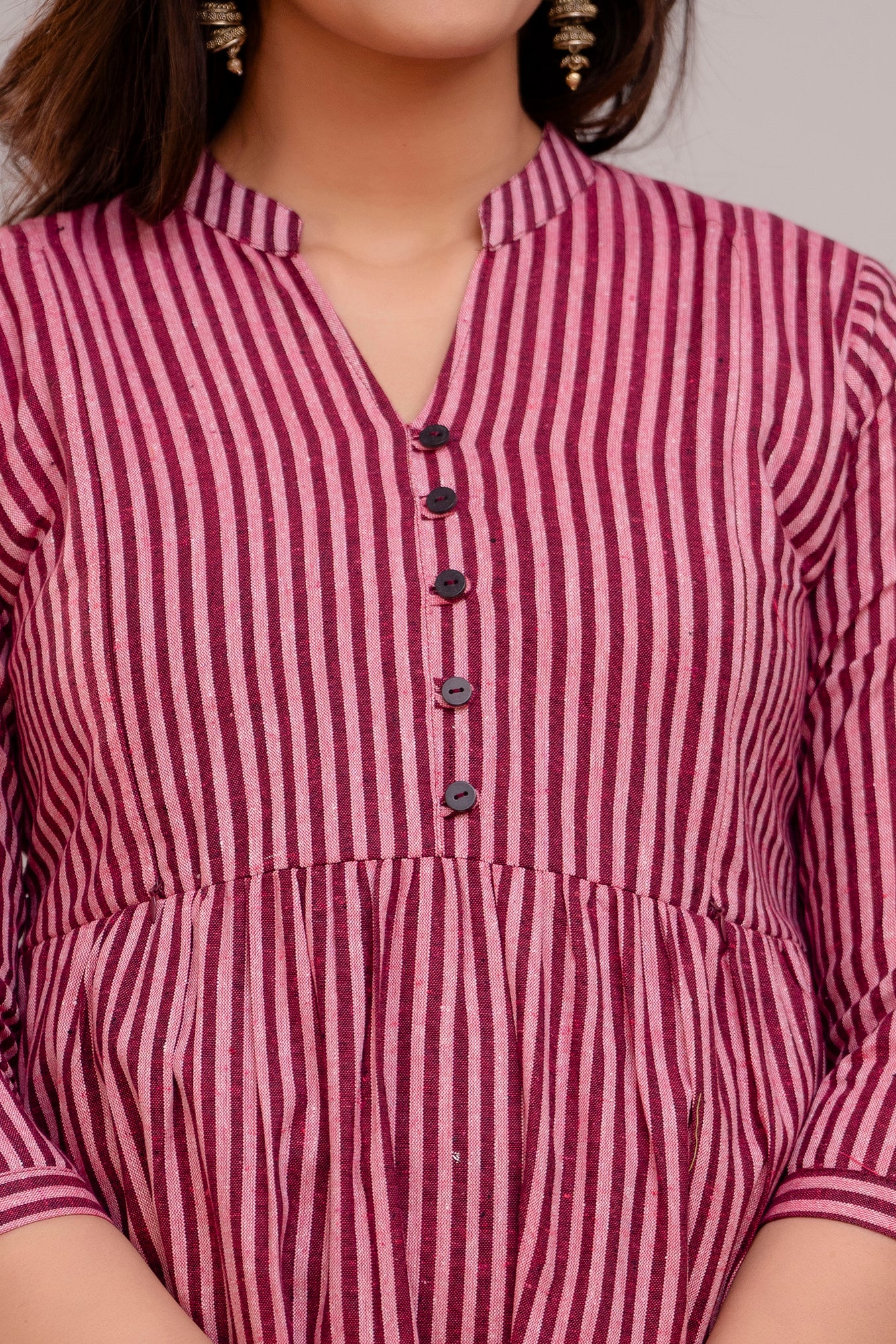 WOMOON Anarkali South Wine Cotton Trendy Flared Maternity Dress